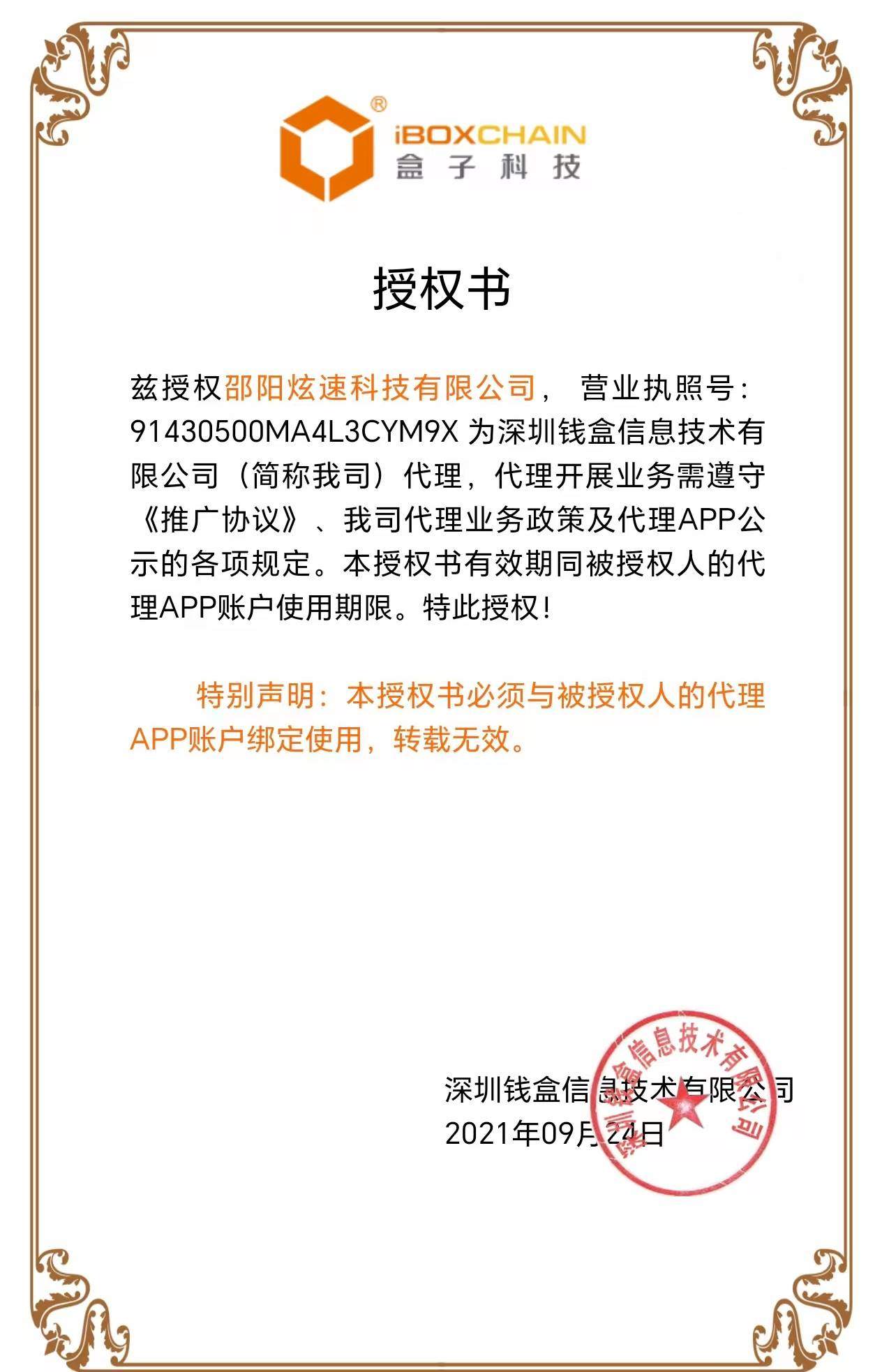 盒子支付-授權(quán)證書(shū)